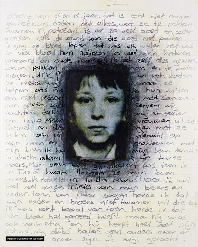 SREBRENICA-POTOCARI (2009) bestaat uit een serie van 40 panelen met fotomontages. Formaat: 75 x 60 cm. Exposities, o.a.: Verzetsmuseum Amsterdam, Herinneringskamp Westerbork, Noyes Museum of Modern Art, Stockton VS. Prodemos, Den Haag.